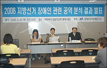 장애우권익문제연구소(이사장 김성재, 이하 연구소)는 지난 25일 오전 사회복지공동모금회 세미나실에서 ‘2006 지방선거 각 당과 광역지방자치단체장 후보의 장애인 관련 공약 분석 발표 기자회견’을 개최하고, 광역자치단체장(시·도지사) 후보 60여명의 공약을 분석한 결과를 발표했다.
